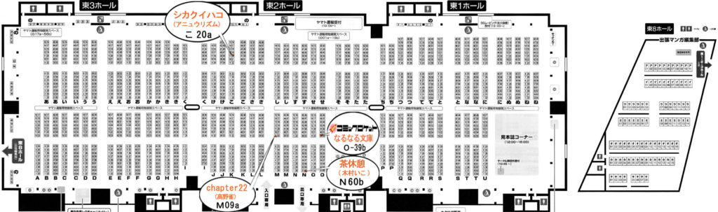 コミックロケットに寄稿してくれている、アニュウリズムさん[C13a]、高野雀さん[G01a]も出店いたします。展示位置を記したマップはこちらです。是非お立ち寄りくださいませ!